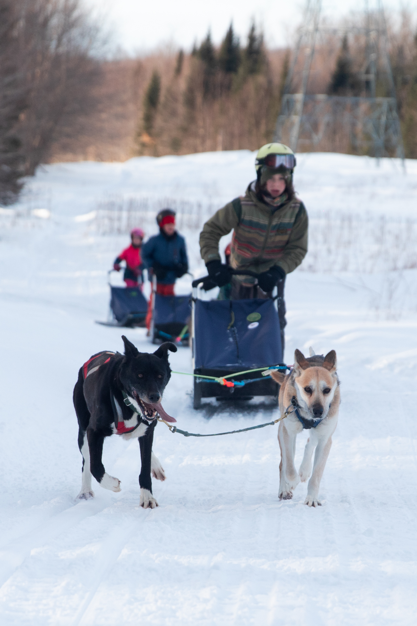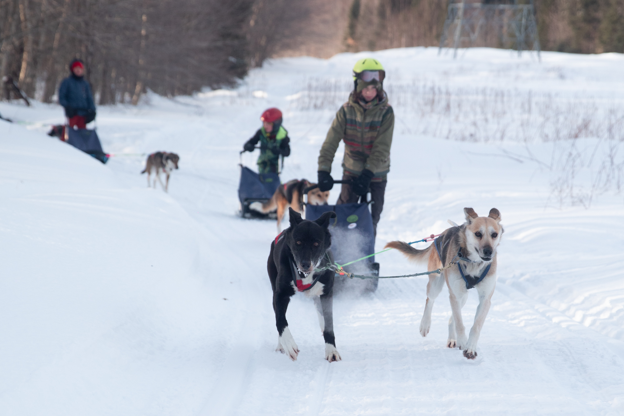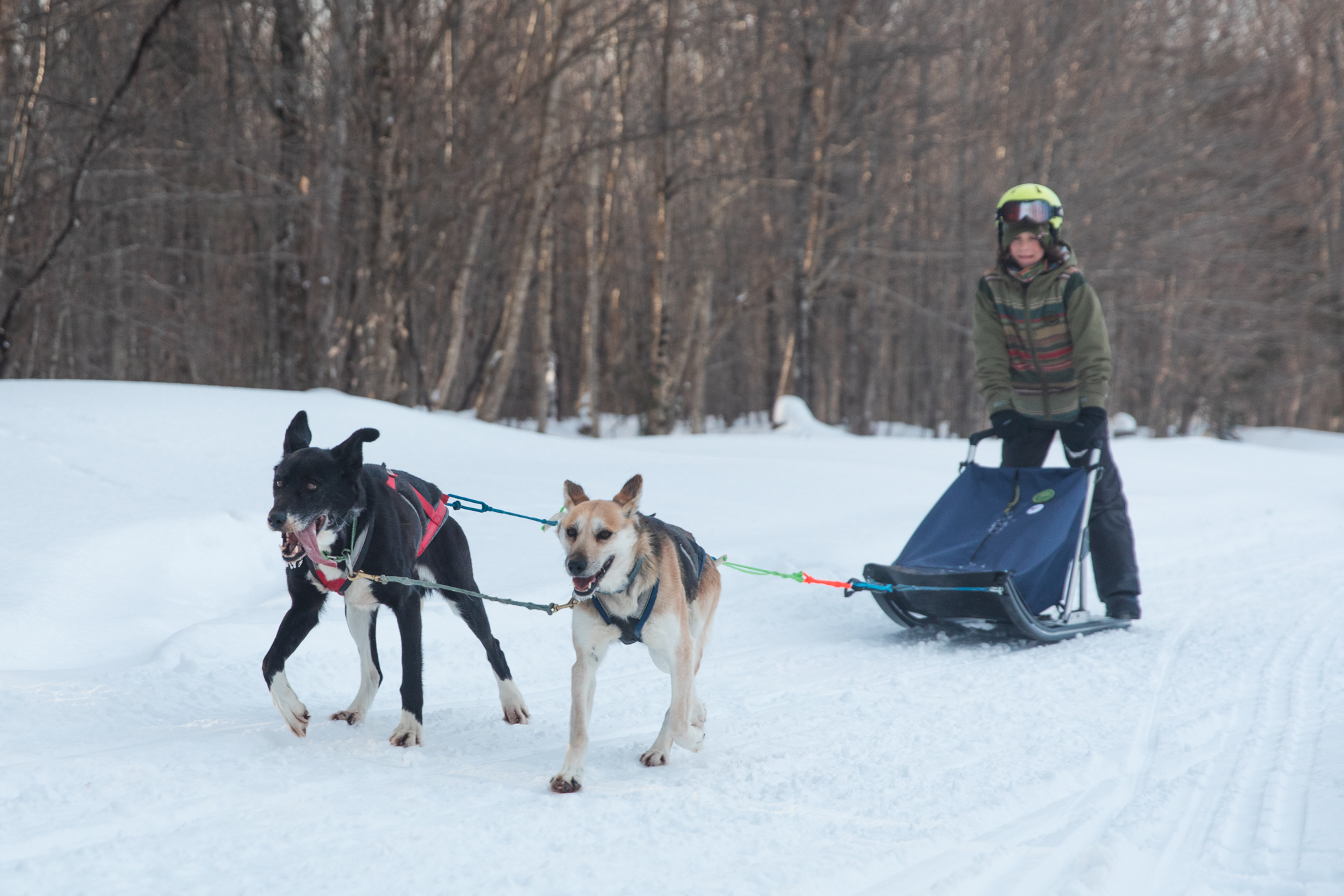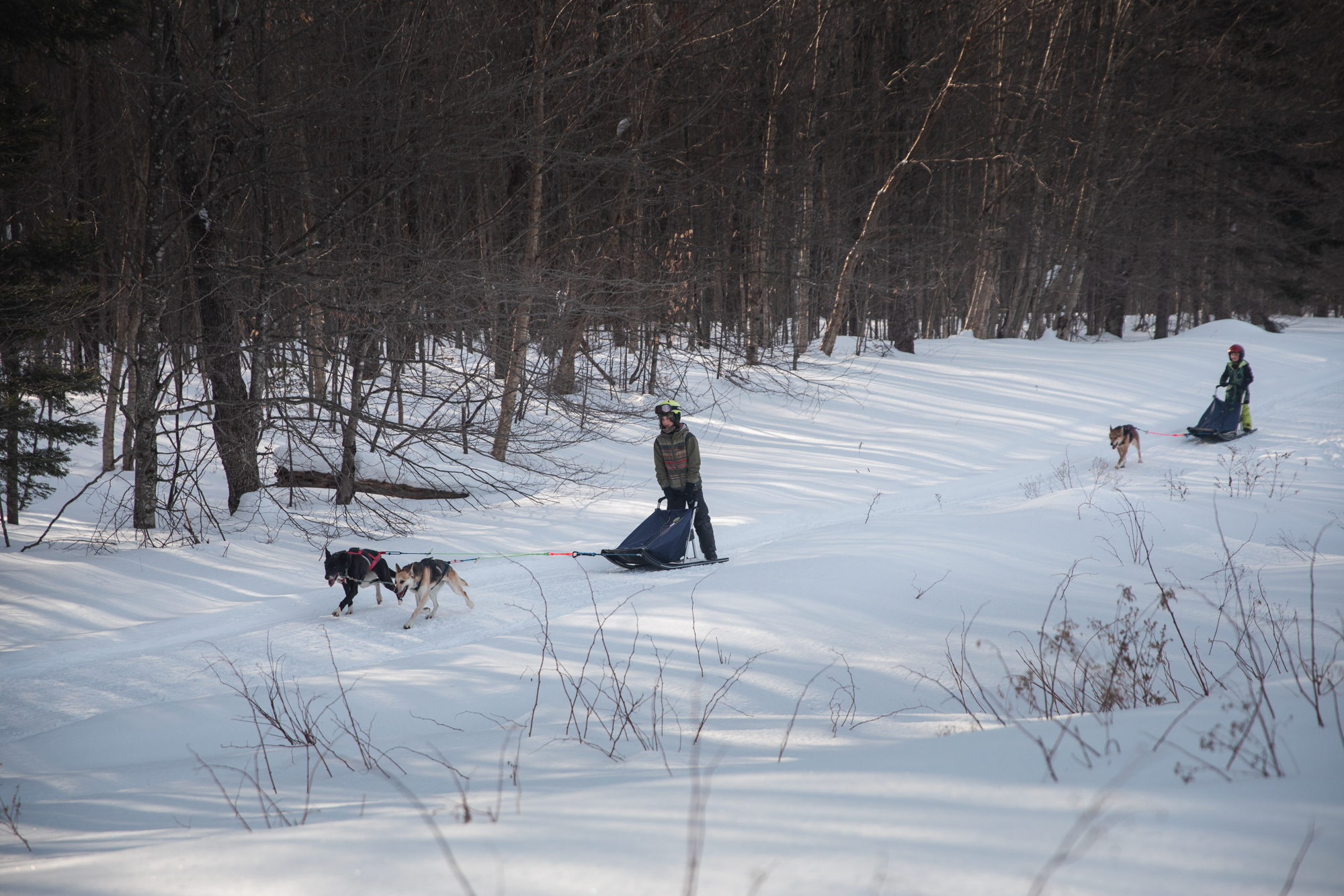 This activity can be strenuous for drivers. As a driver you are part of the team, so when the climbs are steep the driver will have to get off and walk, jog or even help push the sled.