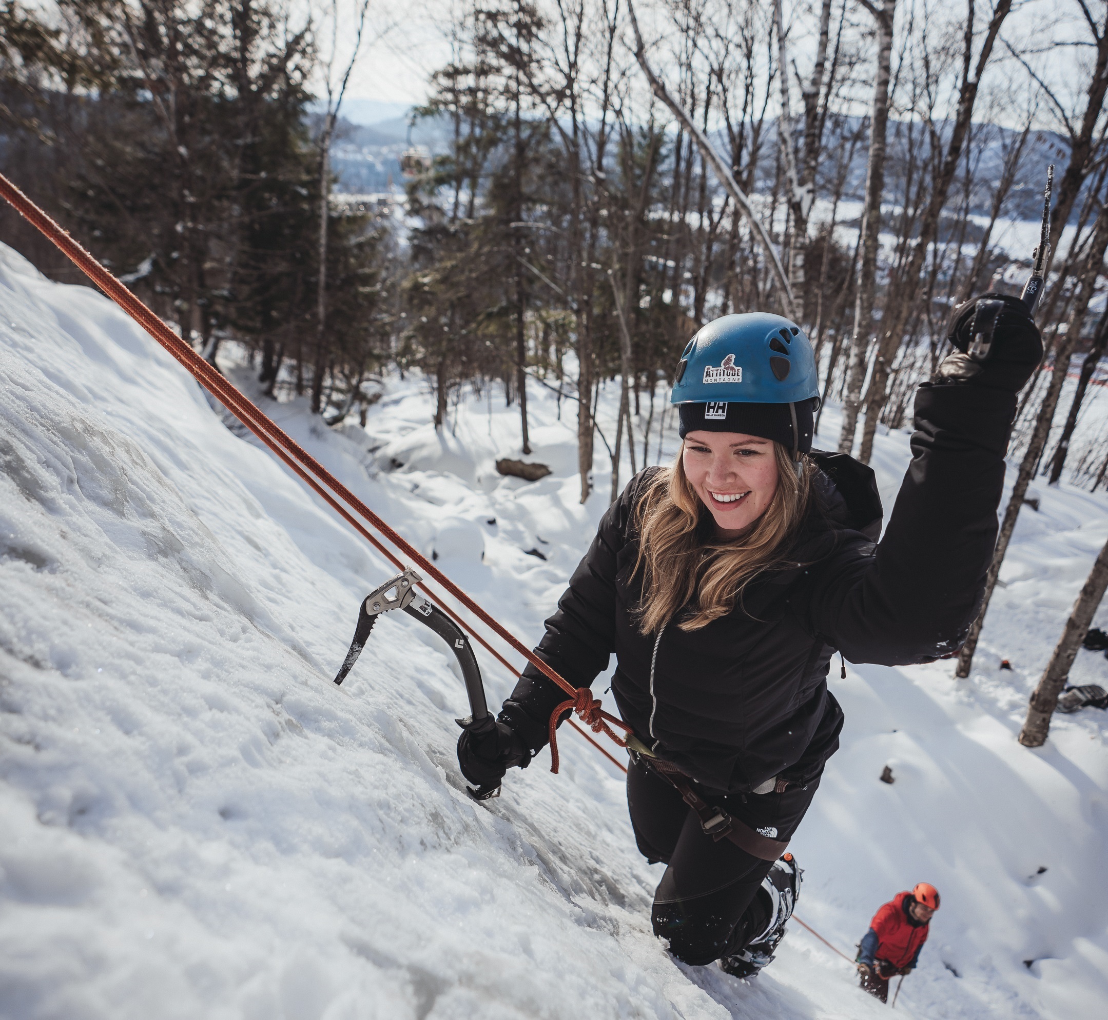 Our certified guides/instructors will teach you the safety protocols, belay techniques and basic ice climbing techniques. This Tremblant ice climbing initiation. is designed for beginners and no climbing experience is necessary.