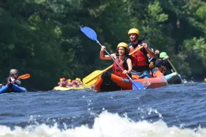 Rafting - Whitewater - Half-day8 kilometers of rafting or sportyakingGuideRaft or kayakAll equipmentWetsuitAccess to amenities (bar, shower, pool, hot tub, volleyball court, dining room)Transport from the Rafting centre to the riverGratuitiesAqua shoes, bathing suit, towelsLunch/snacks/drinksAdult (12 yrs+)Minimum 12 years old. Youths aged 16 yrs – must be accompanied by an adult. A parent must sign the release form for 17 year olds. All participants must know how to swim. No expecting mothers.$99.50Accompanying (non-participant) - site access with mealFor those wishing to join without rafting, our base has a restaurant, spas, swimming pool, bar, volleyball court and forest for walking.$36.50View details